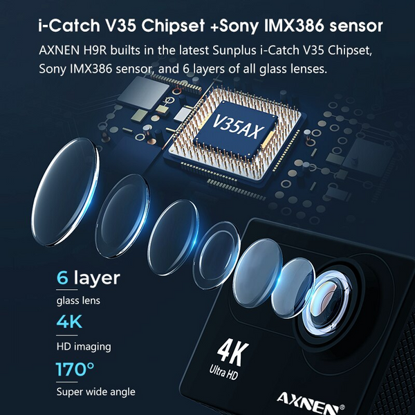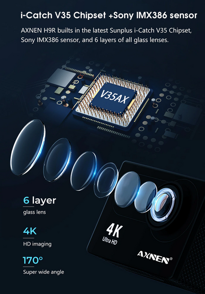 ¿Es portátil? Puedes llevarlo fácilmente en el bolsillo; Hay cuatro excelentes opciones de color. I-CatchV35Chipset + SonyIMX386sensor. Axren H9R se construye en el último Chipset Sunplus i-catch V35, sensor IMX386 y seis capas de todos los cristales.