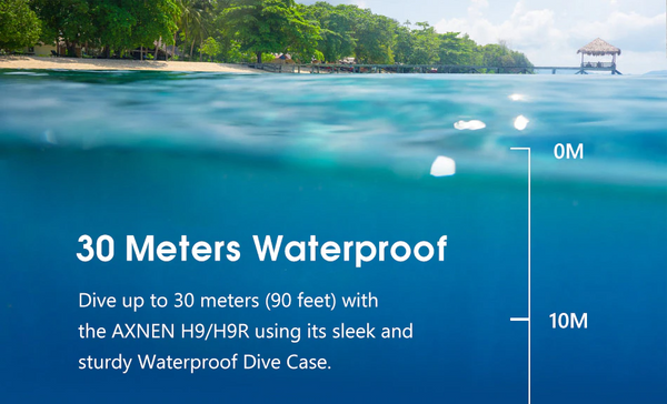 Bucea hasta 30 metros (90 pies) con la funda de buceo impermeable axren H9 / H9R usando su elegante y resistente