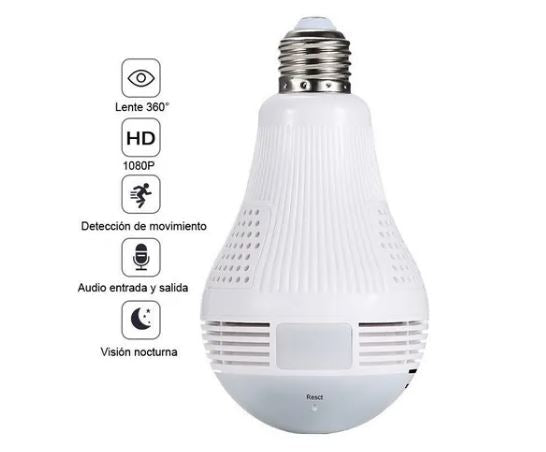 Cámara de Seguridad Bombilla Eléctrica Inteligente 360º (Monitoreada Móvil)